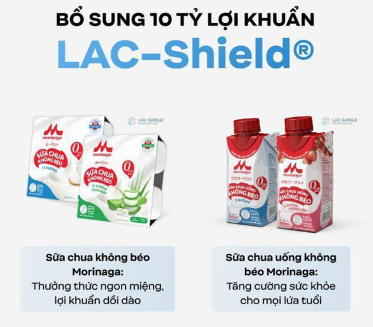 Các sản phẩm như sữa chua không béo Morinaga, sữa chua uống không béo Morinaga, thức uống dinh dưỡng Climeal, sữa bột dinh dưỡng Morinaga đều chứa tới 10 tỷ lợi khuẩn LAC-Shield®. Hãy lựa chọn cho mình sản phẩm phù hợp ngay hôm nay!