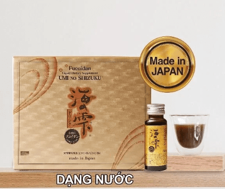 Fucoidan Umi No Shizuku chính là sự kết hợp tuyệt vời, hỗ trợ hạn chế quá trình oxy hóa, nâng cao sức đề kháng cho cơ thể, đặc biệt thích hợp cho người cần giảm tác hại do hóa trị và xạ trị, được sản xuất 100% tại Nhật Bản và đã có mặt ở nhiều quốc gia, trong đó có Việt Nam. Sản phẩm có 3 dạng: bột, viên và nước, tiện dụng khi bảo quản.