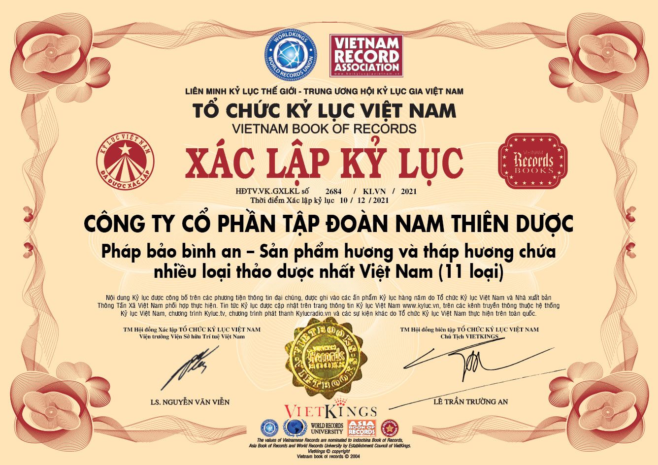 Bằng xác lập kỷ lục Pháp Bảo Bình An – Sản phẩm hương và tháp hương chứa nhiều loại thảo dược nhất Việt Nam