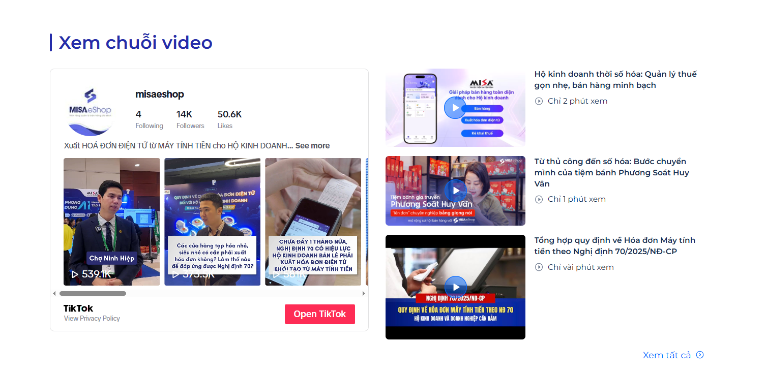 Đồng hành cùng hộ kinh doanh chuyển đổi từ thuế khoán sang kê khai trước 1/1/2026, MISA ra mắt Kho tri thức "Khai thuế dễ dàng - Bán hàng an tâm", hỗ trợ tuân thủ hóa đơn điện tử, nghĩa vụ thuế, giúp kinh doanh an tâm, phát triển.