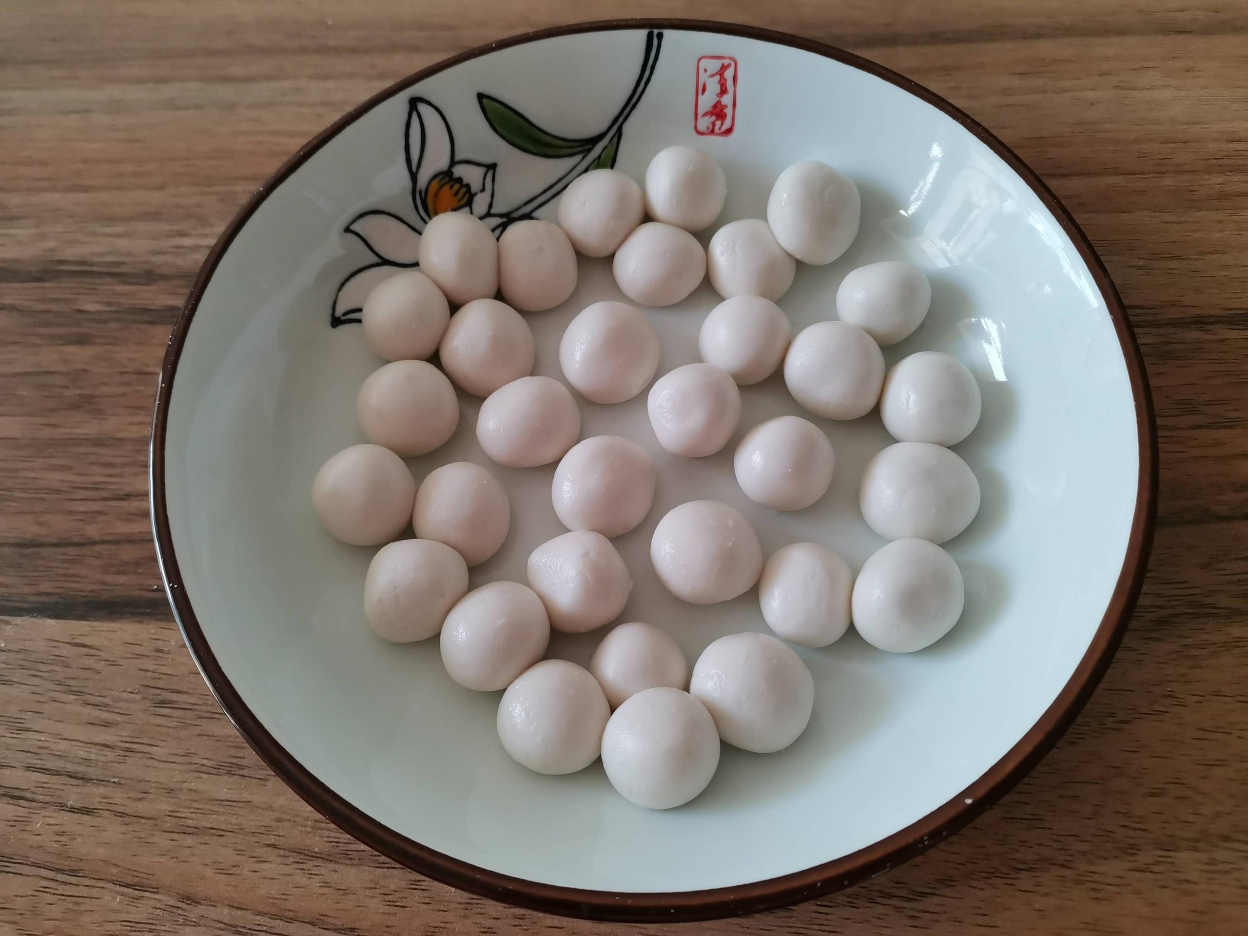 1. Trộn bột nếp với một ít sữa bột hoặc đường bột để tăng hương vị, thêm nước ấm từ từ, nhào đến khi dẻo mịn. Chia bột thành từng viên nhỏ, vê tròn.