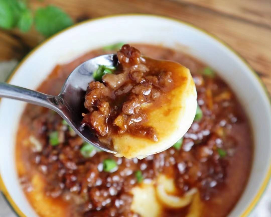5. Khi trứng chín, lấy ra, rưới thịt băm lên trên. Một món ăn vừa bổ dưỡng vừa hấp dẫn đã hoàn thành!