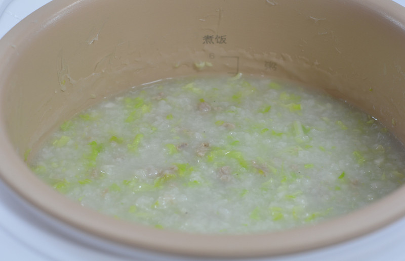 Bước 3: Cho một ít dầu vào chảo, phi thơm gừng, sau đó cho thịt băm vào xào đến khi đổi màu. Thêm rượu nấu ăn vào, xào đều để khử mùi tanh và tăng hương vị. Cho thịt đã xào vào nồi cháo đã nấu nhừ, khuấy đều. Tiếp tục đun nhỏ lửa thêm 30 phút nữa cho đến khi cháo trở nên sánh lại.