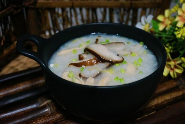 Nguyên liệu: 100g gạo; 200g thịt gà (có thể dùng ức gà hoặc má đùi); 6 cây nấm hương khô (hoặc 150g nấm hương tươi); một ít gừng; một ít hành tím; 1 thìa canh rượu nấu ăn; một ít muối; một ít tiêu; một ít nước; một ít nước tương nhạt (tùy chọn)