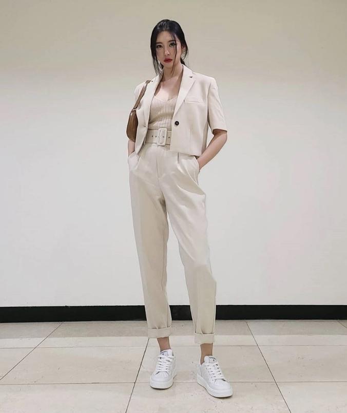 Với áo blazer ngắn tay, các bạn có thể mặc bên trong là áo quây, áo hai dây hay áo phông đều được. Nếu thời tiết mát mẻ thì quần short và chân váy ngắn sẽ rất phù hợp. Đừng quên phối set đồ của mình với những màu giày dép như: sandal, loafer hay sneaker trắng nhé! Kiểu áo này đảm bảo sẽ đem đến cho nàng sự trẻ trung, năng động và hiện đại.