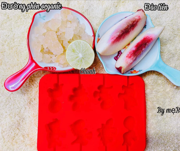 - Đợi một lúc chờ hỗn hợp trên bớt nóng rồi cho vào khuôn rồi cắm cây cắm kẹo. Cuối cùng, cho kẹo đã nguội cho vào ngăn mát tủ lạnh 2 tiếng là kẹo đã định hình sẽ cho thành phẩm.