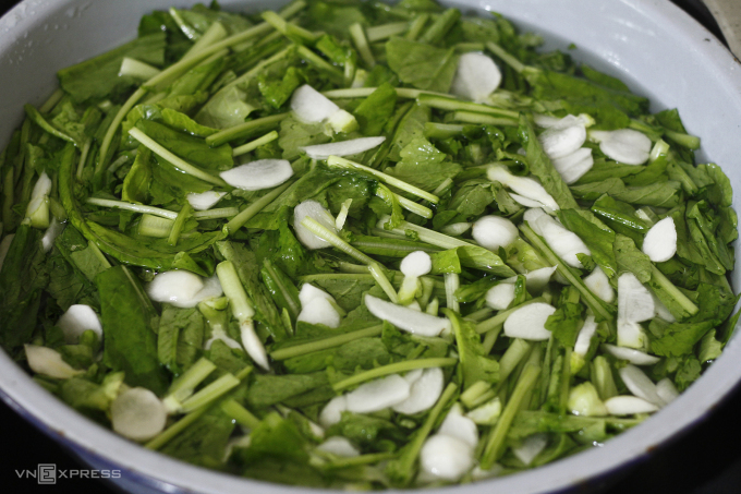 Thành phần nguyên liệu: 1kg lá củ cải, 50g hành lá, 2-3 thìa canh muối, 2 thìa canh đường, 2 lít nước.