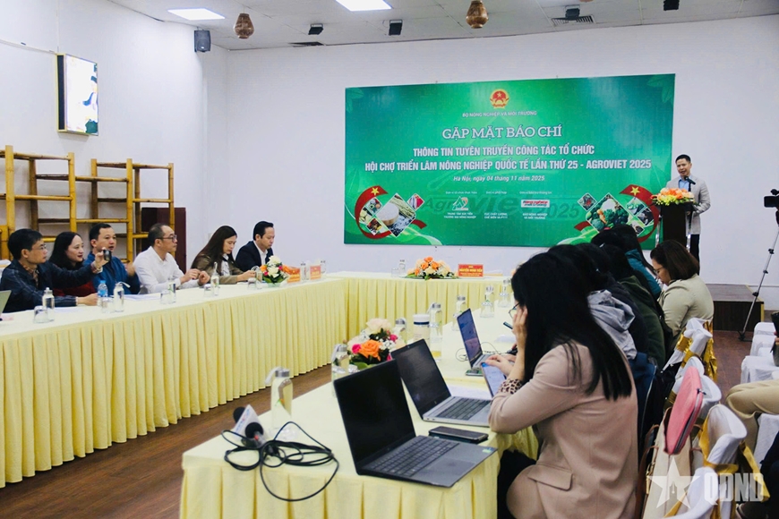 Sáng 4-11, tại Hà Nội, Trung tâm Xúc tiến thương mại Nông nghiệp (Bộ Nông nghiệp và Môi trường) tổ chức gặp mặt báo chí thông tin về công tác tổ chức Hội chợ triển lãm nông nghiệp quốc tế lần thứ 25 (AgroViet 2025).