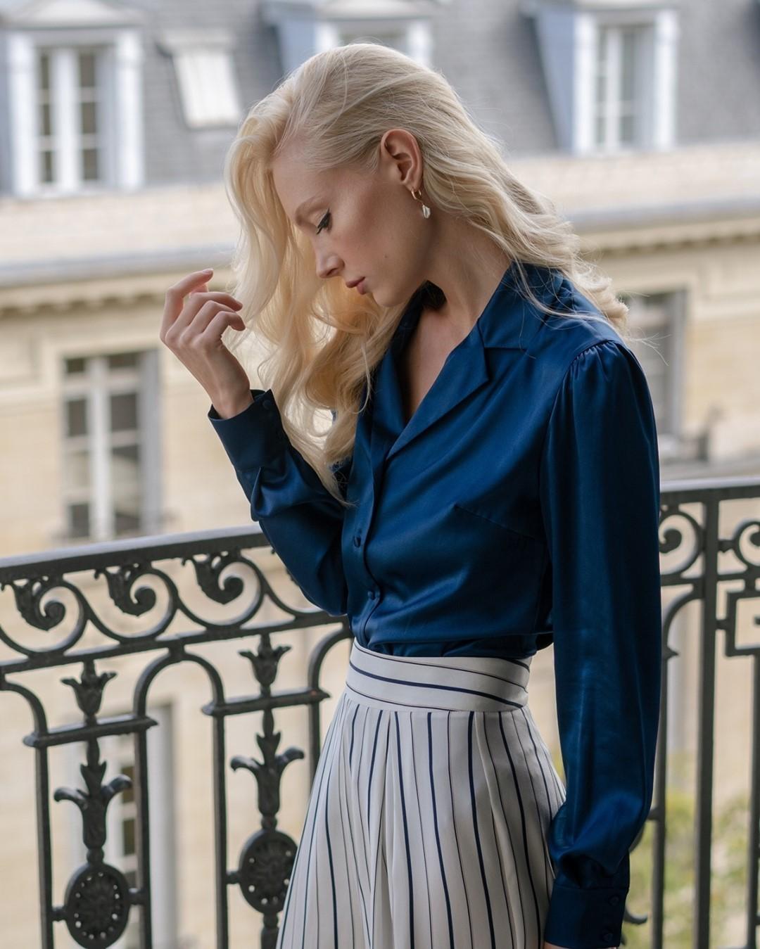 Cách đơn giản nhất để có một vẻ ngoài ngọt ngào tựa như nàng thơ nước Pháp chính là bố sung cho tủ đồ những thiết kế sơ mi lụa sáng màu. Còn nếu các nàng thích một vẻ ngoài cao sang chững chạc đôi chút thì những gam màu như xanh tím than, nâu đất... chính là lựa chọn tuyệt nhất lúc này. Sự cổ điển trầm lắng của sơ mi lụa luôn chiều lòng phái đẹp, đủ chinh phục mọi ánh nhìn của các đấng mày râu.